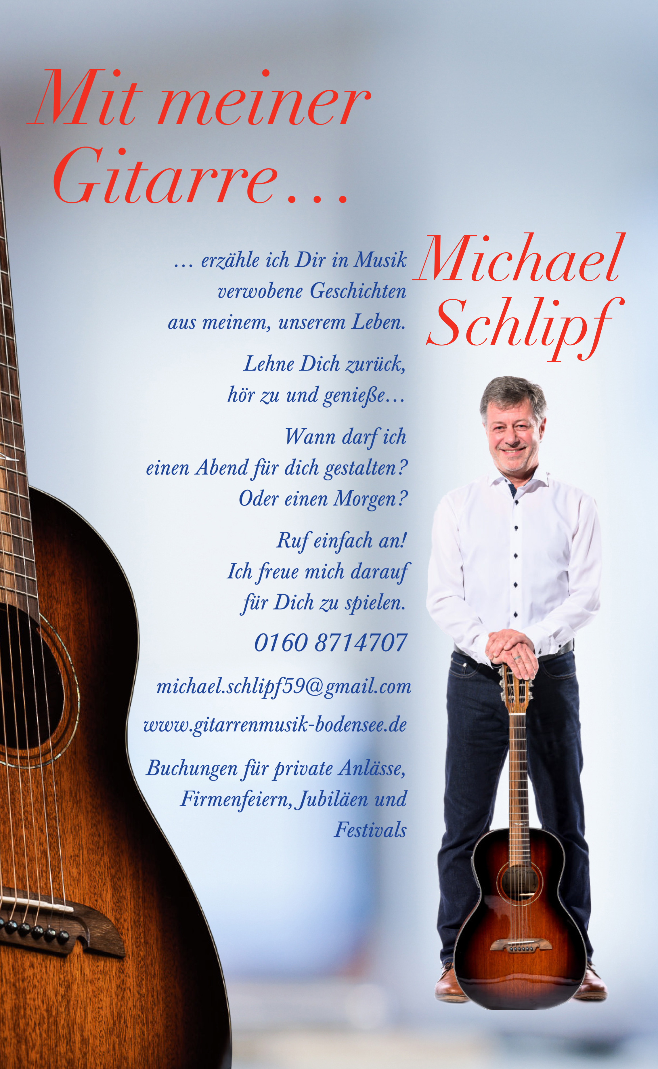 Seit über 40 Jahren spiele ich nun Gitarre. Nun ist der Moment gekommen in dem mir meine Zuhörer mit erstaunten, sehr wachen und glänzenden Augen bezeugen, dass das was sie sehen und hören erstaunlich ist, so wohltuend ist, auf eine besondere Weise unterhält und entspannt. Es ist also an der Zeit meine Musik live zu präsentieren.